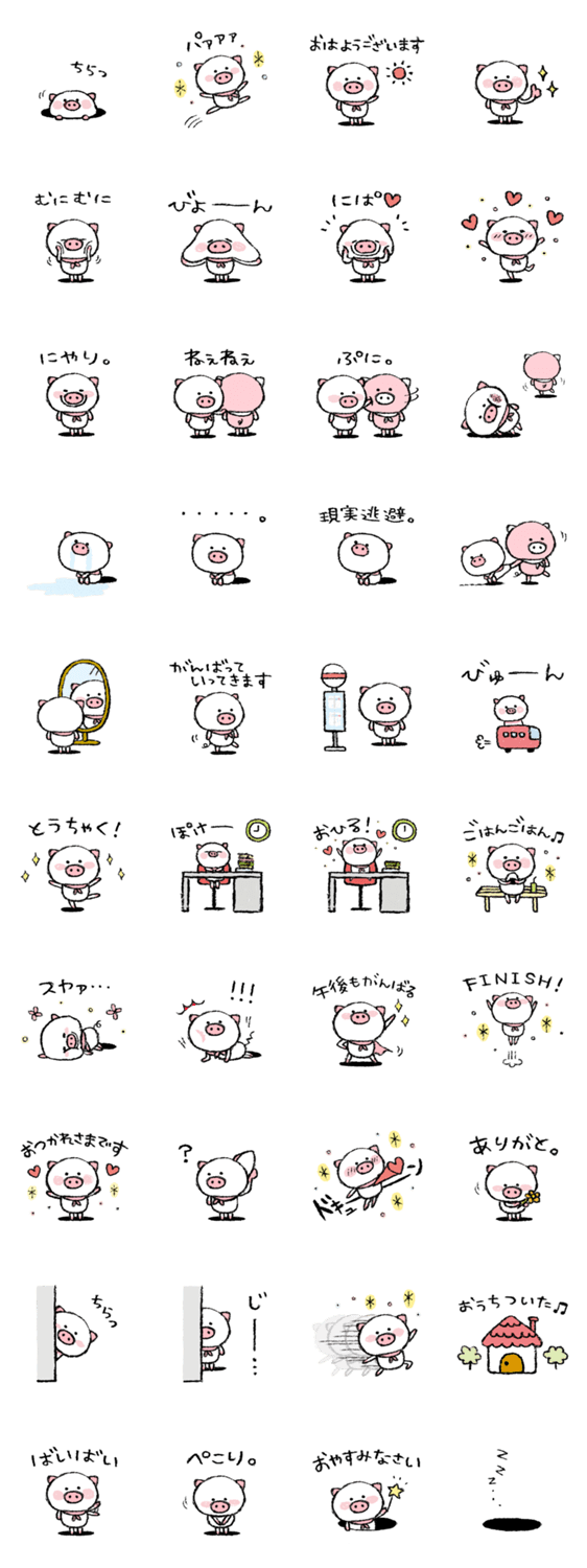 ゆるくてかわいい、マイペースなしろぶたのぶぶまるスタンプです♪