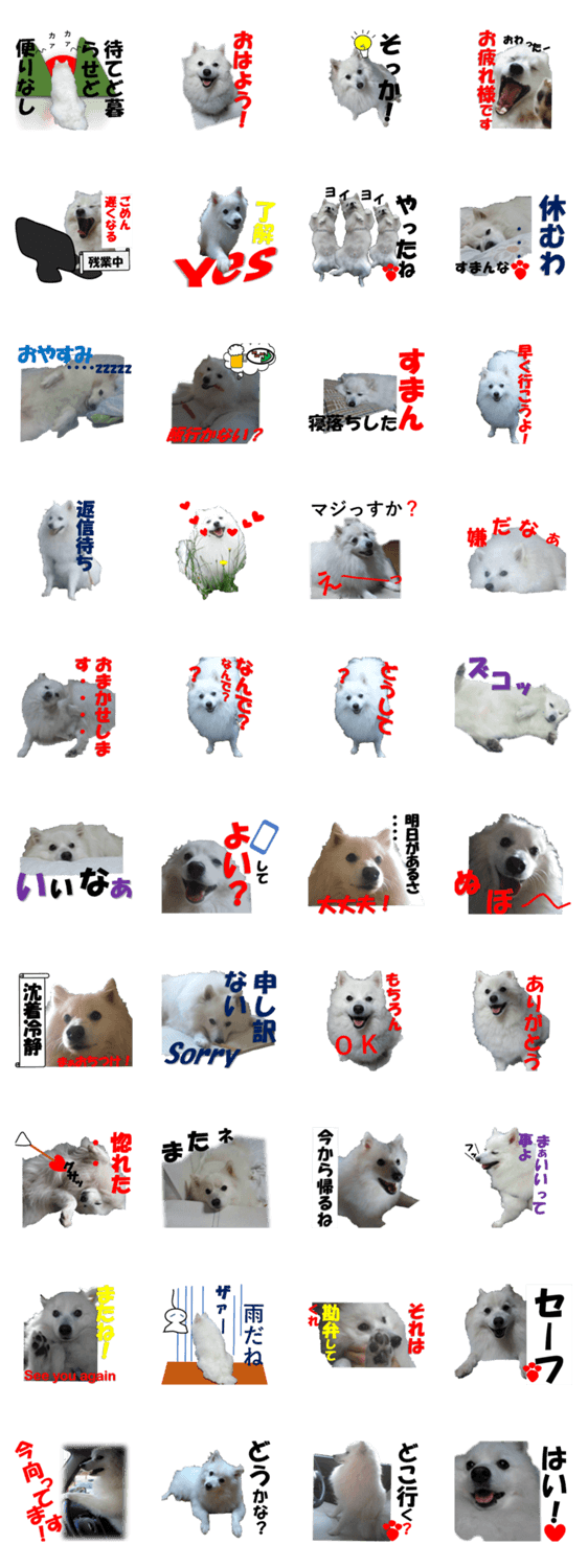 犬田さんちのスピッツ犬です。愛くるしいスピッツ‥犬好きにはたまらんスタンプです。日常会話に使えるスタンプ宜しくお願い致します。