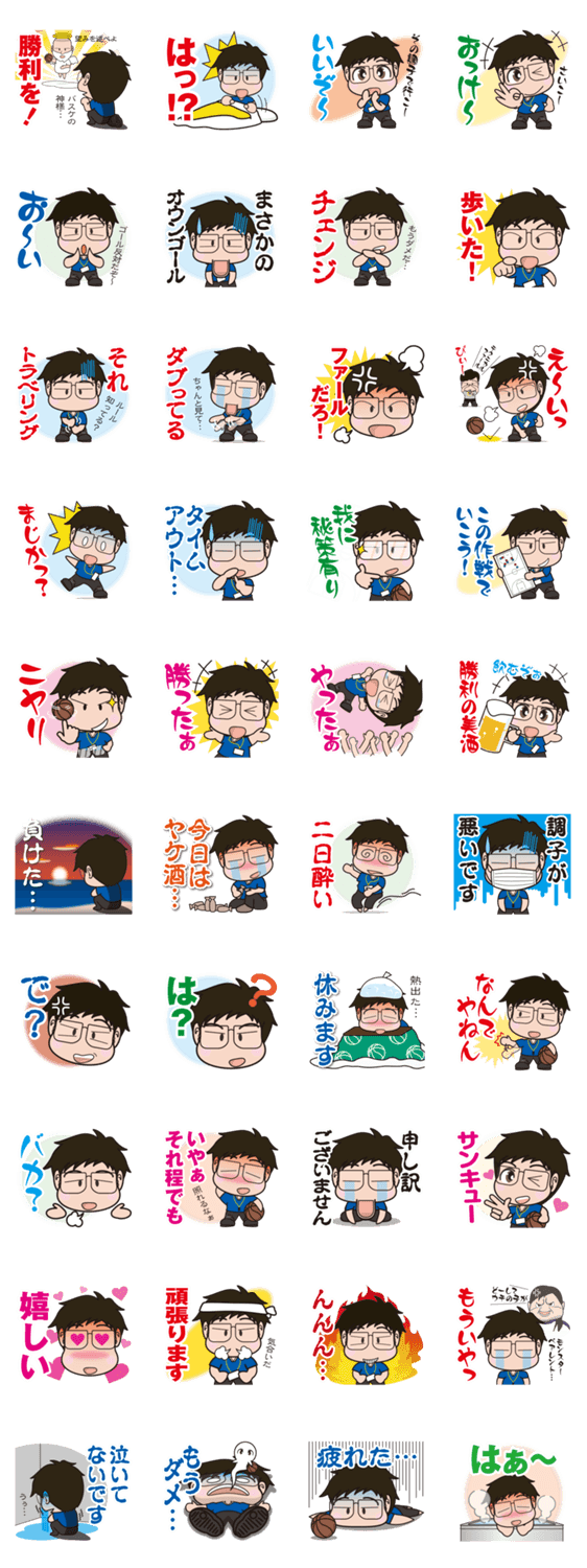 | スタンプ説明 | バスケ部のコーチが喜怒哀楽たっぷりにメッセージを送ります。 |