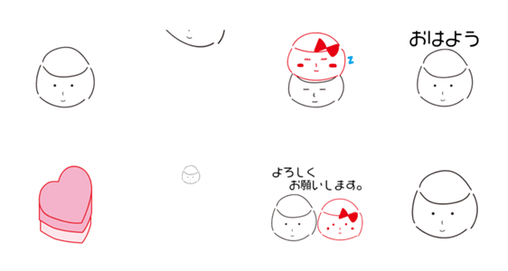 1:やったー! 2:行くよー! 3:寝る 4:おはよう 5:LOVE 6:じー(見つめる) 7:よろしくお願いします。 8:でれー(伸びる)