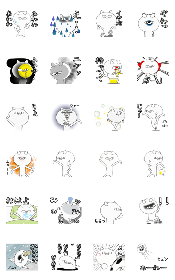 白ネコのあいうえお・・・ってるスタンプ