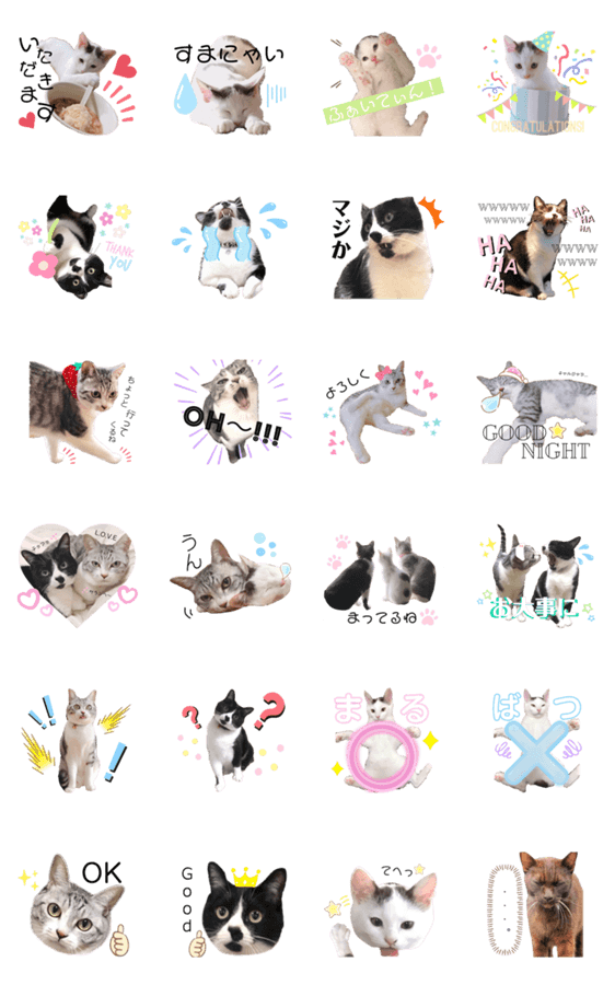 白ネコのあいうえお・・・ってるスタンプ