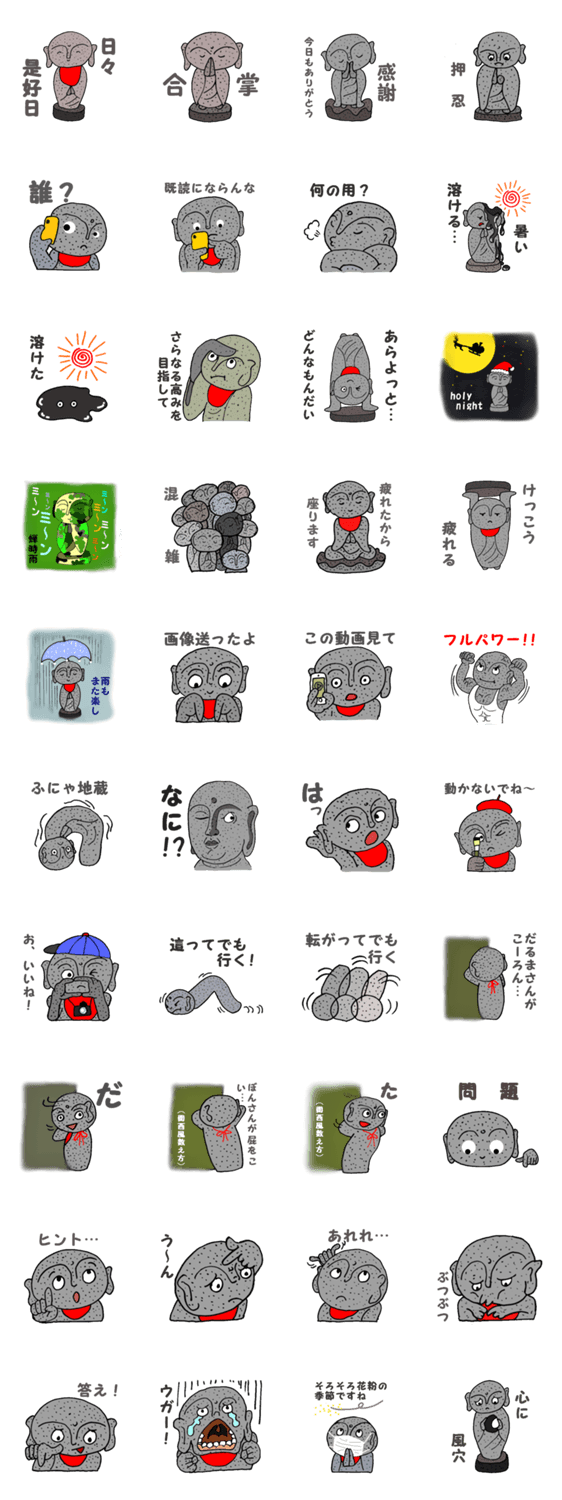 お地蔵さんのスタンプ第二弾です。ほのぼのと暖かい気持ちになります。