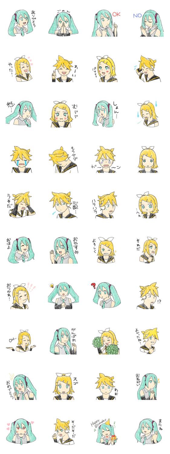 初音ミクと鏡音リン&鏡音レンのスタンプです。