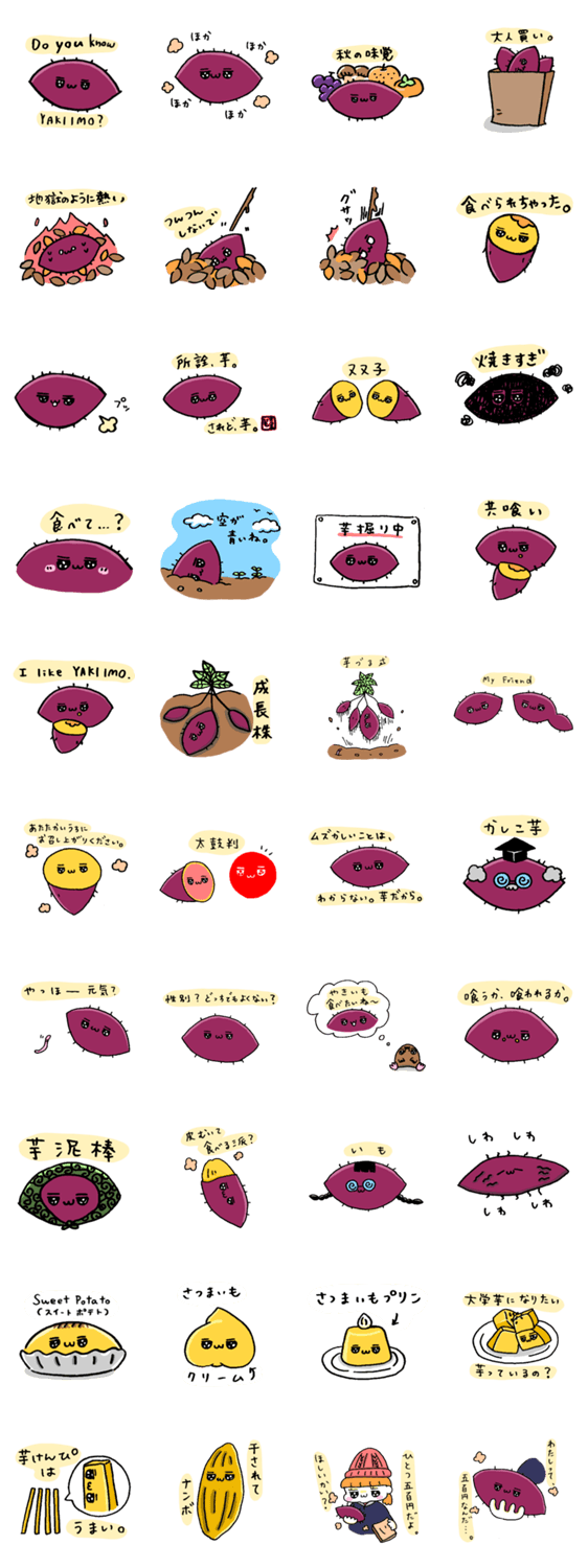 秋冬にピッタリな焼き芋(サツマイモ)のスタンプです。