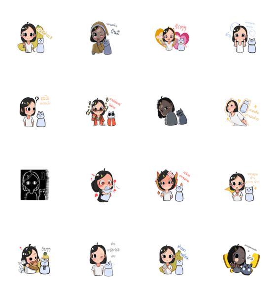 白ネコのあいうえお・・・ってるスタンプ
