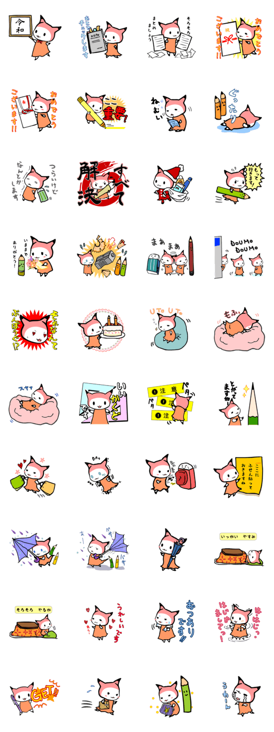 いつも文房具といっしょにいる、ちいさい猫のようないきもののかわいいスタンプ第三作目です。あなたの近くの文具にもよりそっているかもしれません。