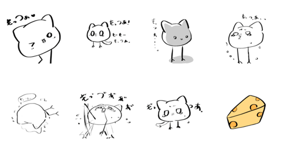 猫のスタンプ。 モッツァ!したい時やチーズ食べたい時に