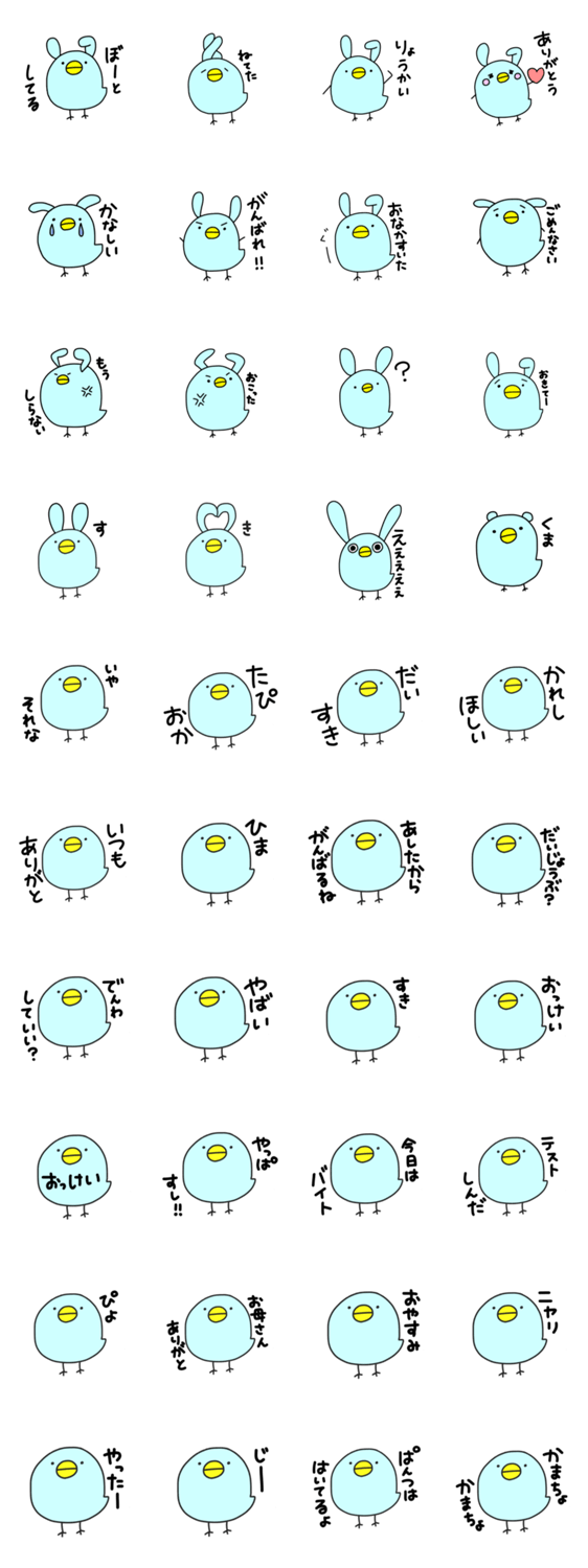 後半めんどくさくなってただのひよこになりました。使いやすいスタンプになっているので良かったらぜひ。