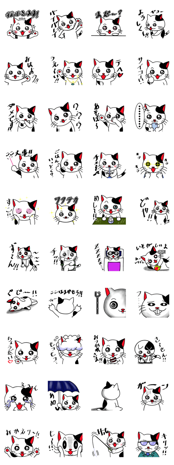 白黒ぶち猫のシンプルスタンプ -LINEスタンプマニア