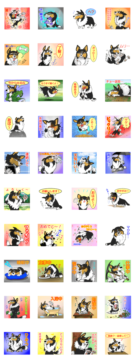 シェットランドシープドッグの色々な表情の詰まったスタンプです。