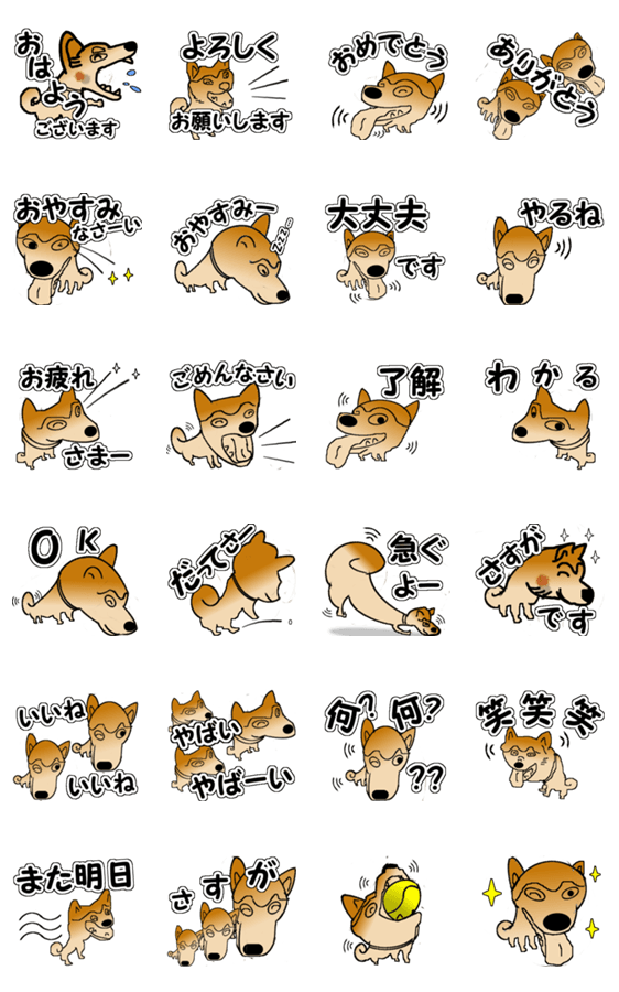 茶色い可愛い柴犬が毎日挨拶 -LINEスタンプマニア