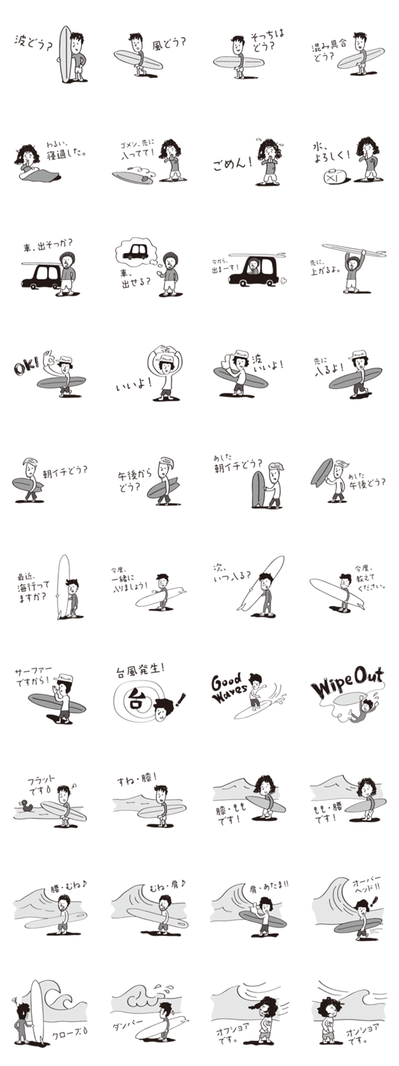 サーファーの為のかなり実用的なスタンプ。波情報の交換や、友人との連絡に活用してください。