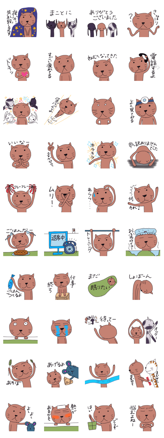 フナネコさん、待望の第2作!第1作の主人公、シマネコさんの友達の茶ネコさんが活躍するスタンプです。