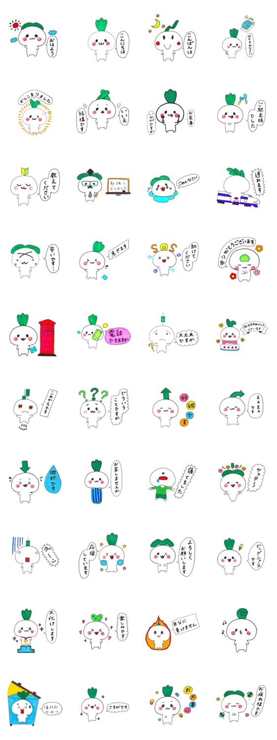 野菜のかぶをモチーフにしたオリジナルキャクター『かぶまるくん』のスタンプ第1弾です。楽しいコミュニケーションのために使っていただくスタンプです。