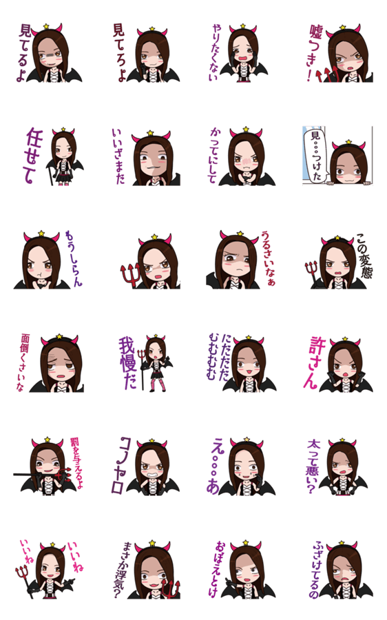 動くスタンプの愛ちゃん。 悪魔の服を着た愛ちゃん いつも楽しくてかわいいハッピーライフ。 ♪───O(≧∇≦)O────♪