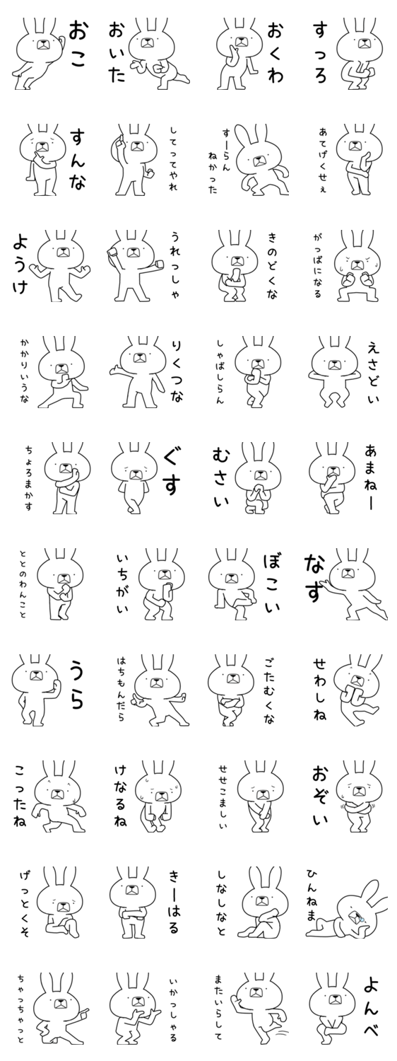 いろんな方言をつかううさぎのスタンプ小松弁編3(石川・富山・金沢・加賀・近畿・北陸地方の方。また違う県verに似た方言が見つかるかも)