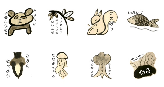 スタンプ説明 中学生が書いた墨絵スタンプ