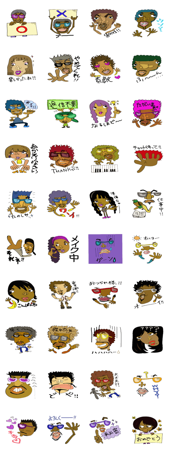 ファンキーピープル第二弾です。ラブ・ブラックミュージック。ブラックミュージックファンのためのスタンプです。色んな場面でご活用ください。