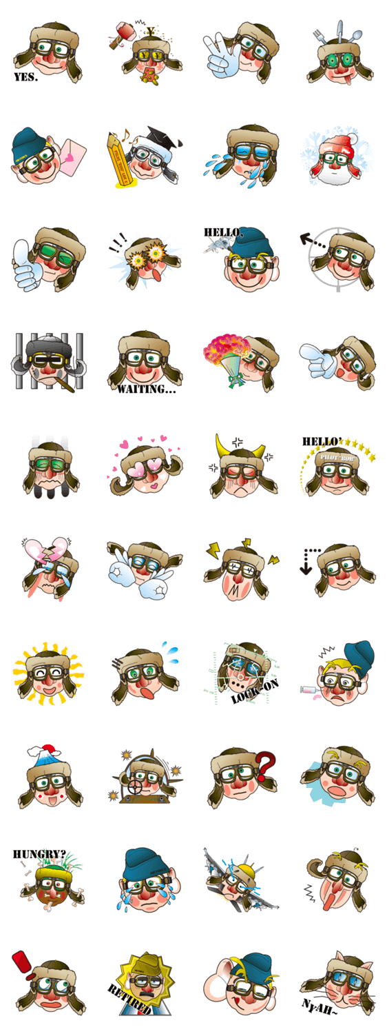 | スタンプ説明 | 自称ヒーロー「パイロット ボブ(正式には「バ~ヴ」」のオモシロ愉快なステッカーたちの誕生です♪ |