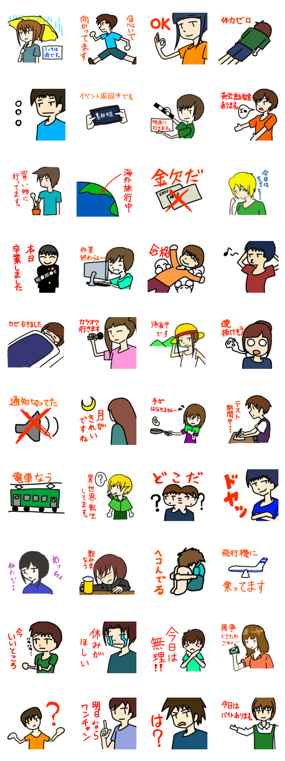 用事ができたときとかに使えるかもしれません。 OKとかの返事系のモノもあります。
