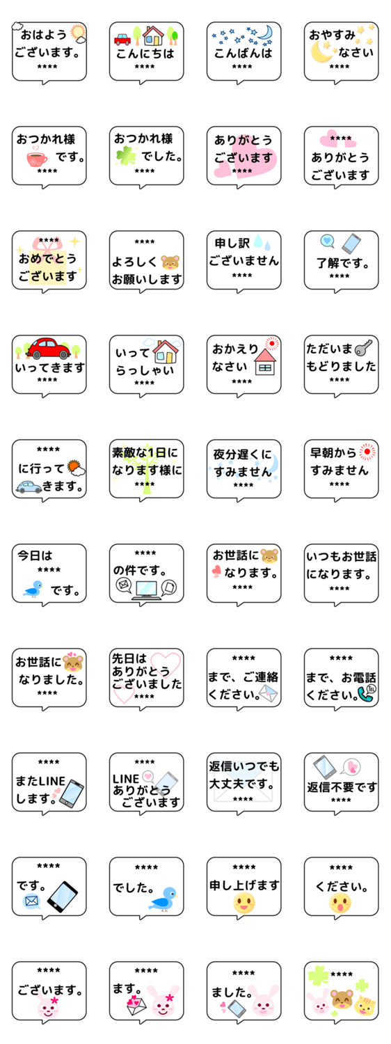 大きな文字で読みやすい、仕事に使える大人の敬語のカスタムスタンプです。 名前・苗字・あいさつ・短いメッセージなど好きな文字をいれてください。6文字まで送れます。