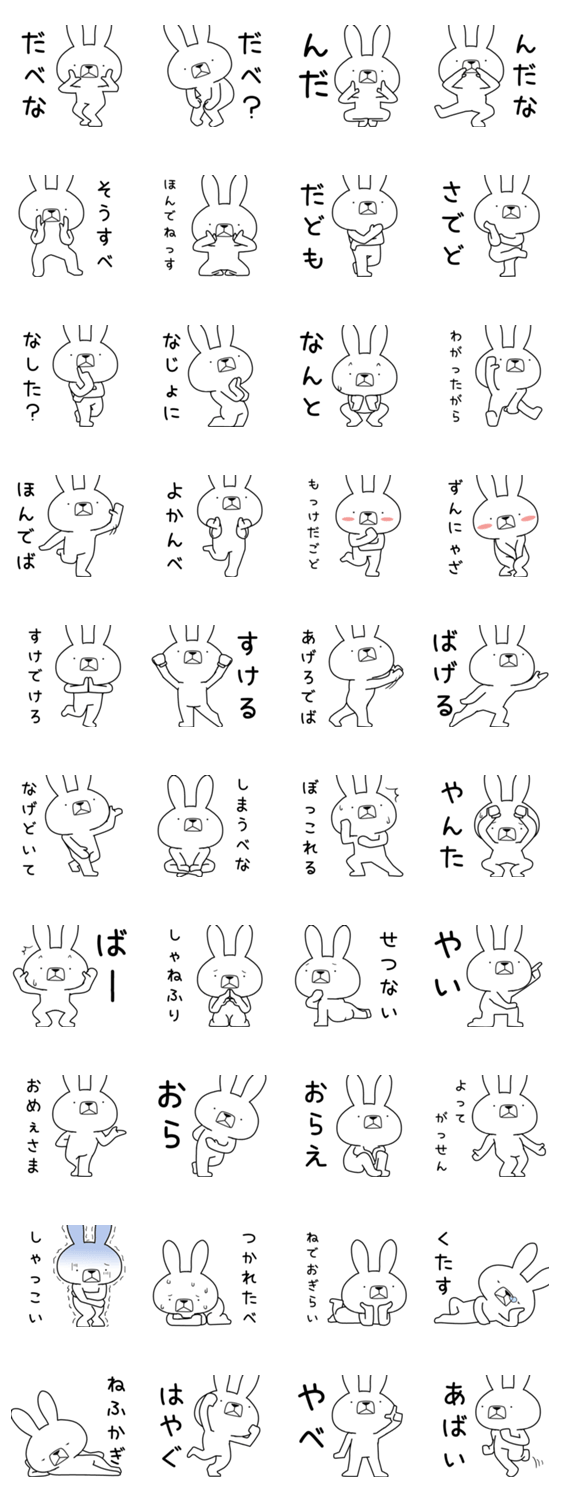 いろんな方言をつかううさぎのスタンプケセン語編3(ケセン語ですが、宮城(気仙)・秋田・青森・岩手・山形・福島、また違う県verに似た方言が見つかるかも)