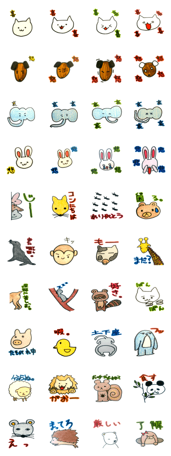 スタンプ第二弾、かわいいどうぶつたちのひとことスタンプ。