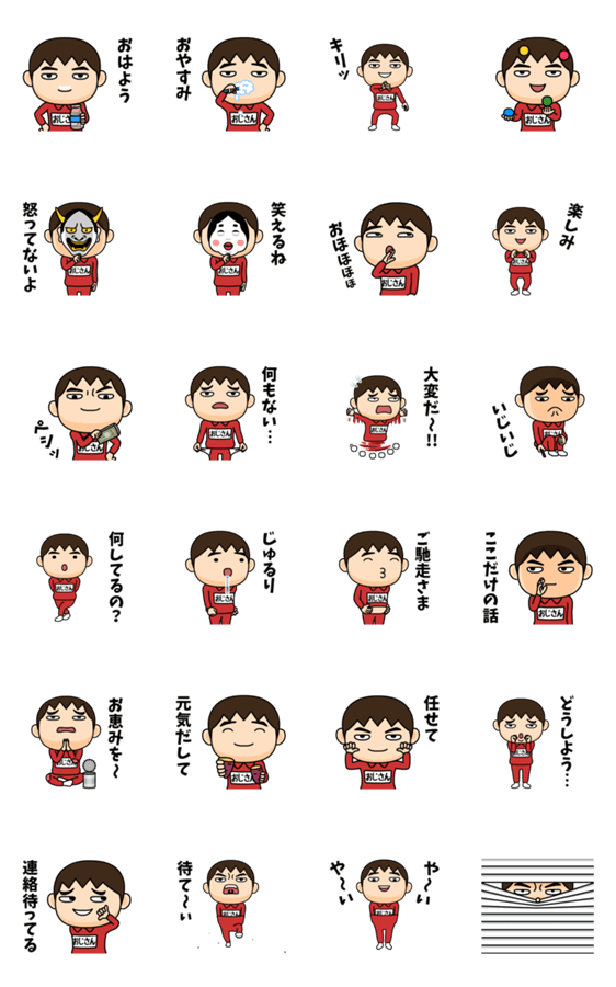 おじさん(オジサン)が使う芋ジャージの名前スタンプ第9弾!歯磨き、お面、お手玉など小道具を使った面白い動き、友人や恋人との約束事に使える会話を集めてみました!