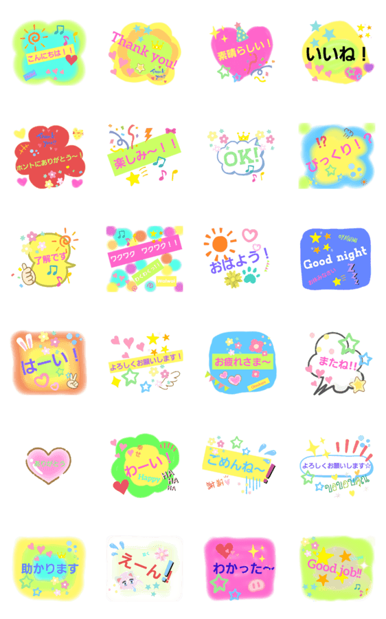 基本あいさつの使いやすいスタンプです。よく使うフレーズがかわいいスタンプになりました。