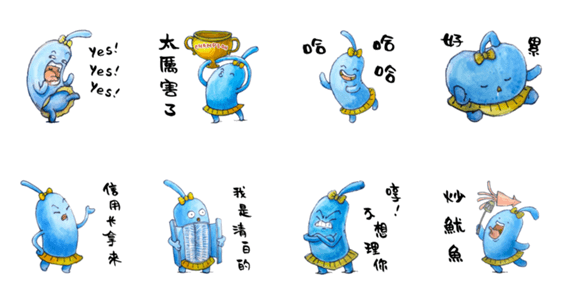 | スタンプ説明 | A brush with blue feet |
