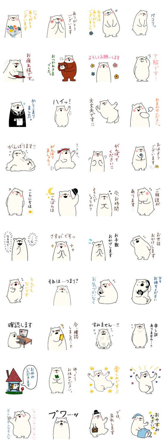 ゆるいシロクマのスタンプです。お仕事でも使いやすい敬語バージョンです。