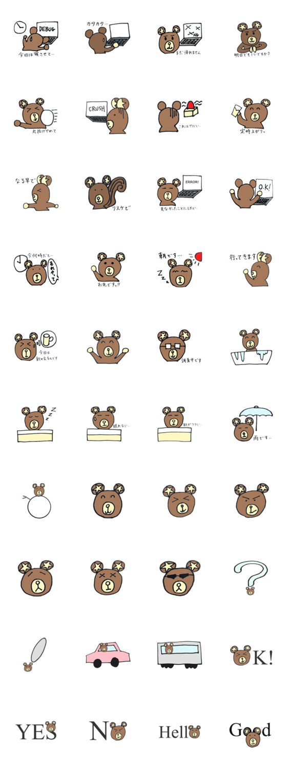 多忙なSEの気持ちや日常会話を可愛いくま君が代弁してくれるスタンプです。