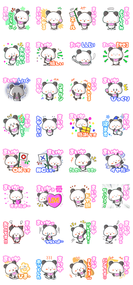 ゆっけ。が贈る【まいか】用名前スタンプ03です。友達や恋人、グループでのやりとりにぜひ。《ゆっけ。のアニぱ!》03「甘えたな赤ちゃんパンダ」のスタンプです。