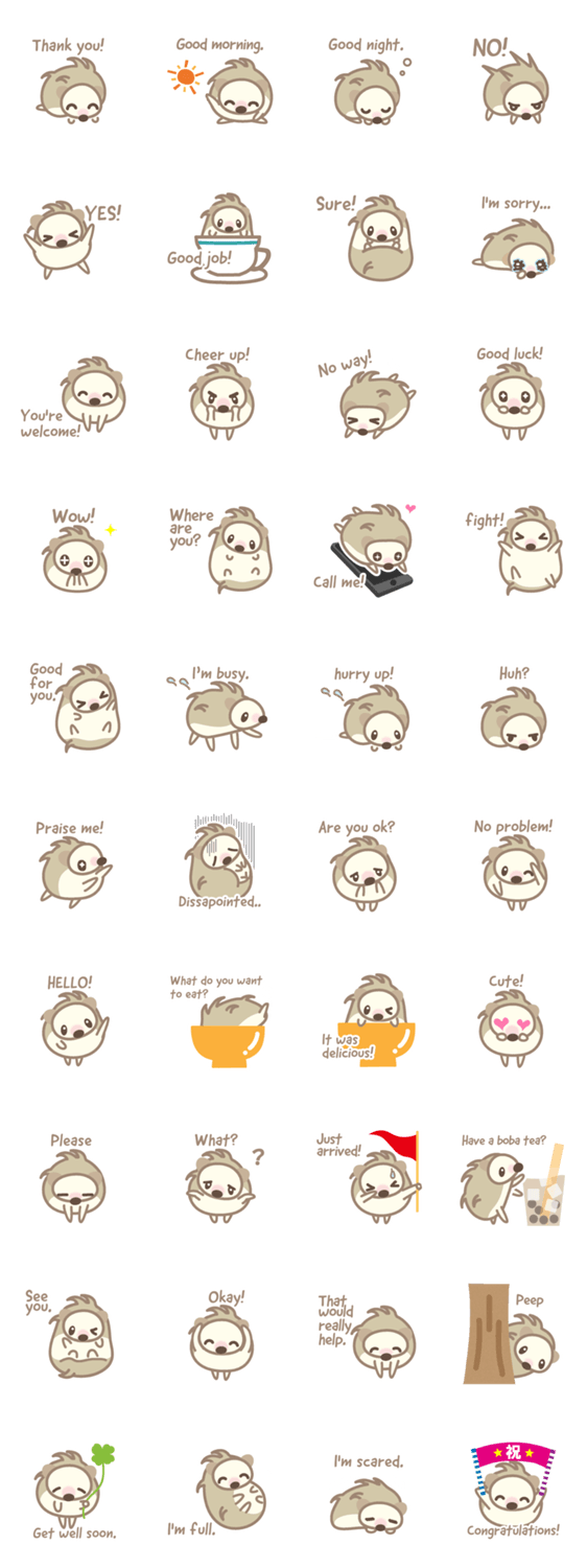 ハリネズミ「ハリマル」の英語版日常Stamp -LINEスタンプマニア