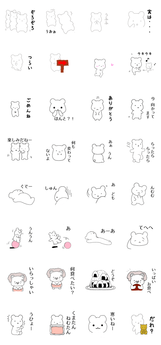 ほわほわ真っ白しろな多分しろくまちゃんとその仲間たちのゆるくて時々シュールなスタンプです。