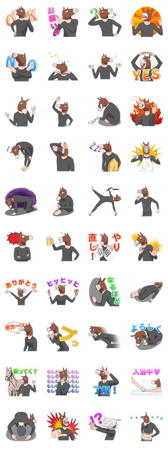 馬のマスクを被った一風ドジな男のスタンプです。空気を変えたいときにスタンプを押してください。