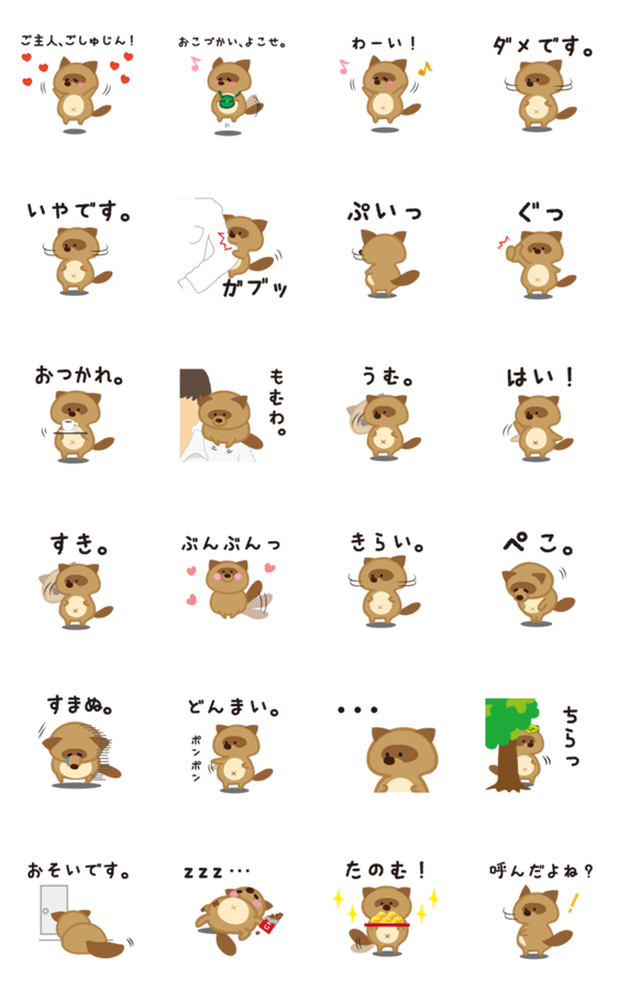 | スタンプ説明 | たぬきのポンちゃんは今日もご主人の帰りを待っています。 自称嫁ポジのポンちゃんは言葉がやや荒いようですが、本当はご主人が大好きなのです。 |