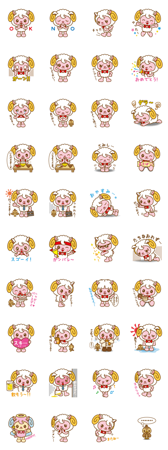 毎日、いろんな事に感動 • 感激し目をウルウルさせている前髪クルンの「ヒツジのウールん」。そんなウールんの日常をスタンプにしました。