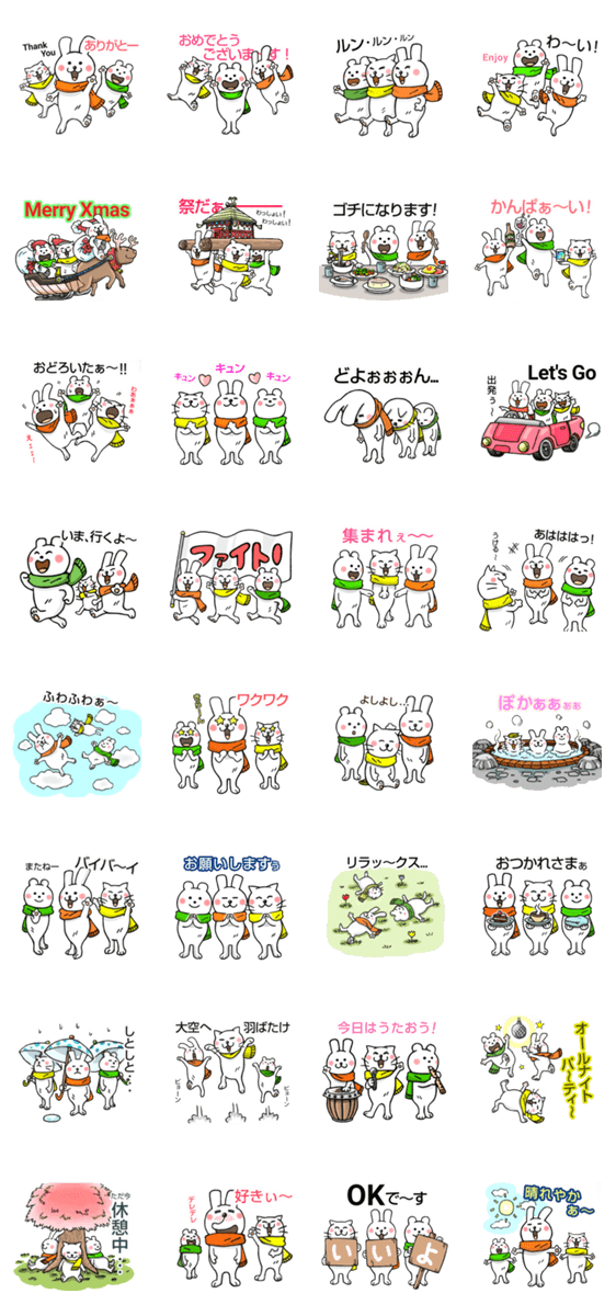 仲のいいトモダチが、楽しく暮らす模様を描いたスタンプです。