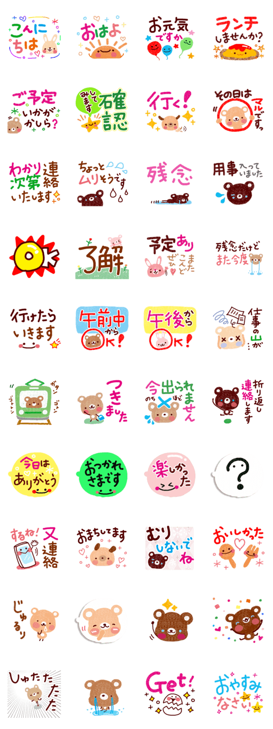 文字が大きく見やすい♪予定・お誘いにまつわるスタンプセットです。 友達・仲間・ママ友・家族などとの連絡にも便利です。