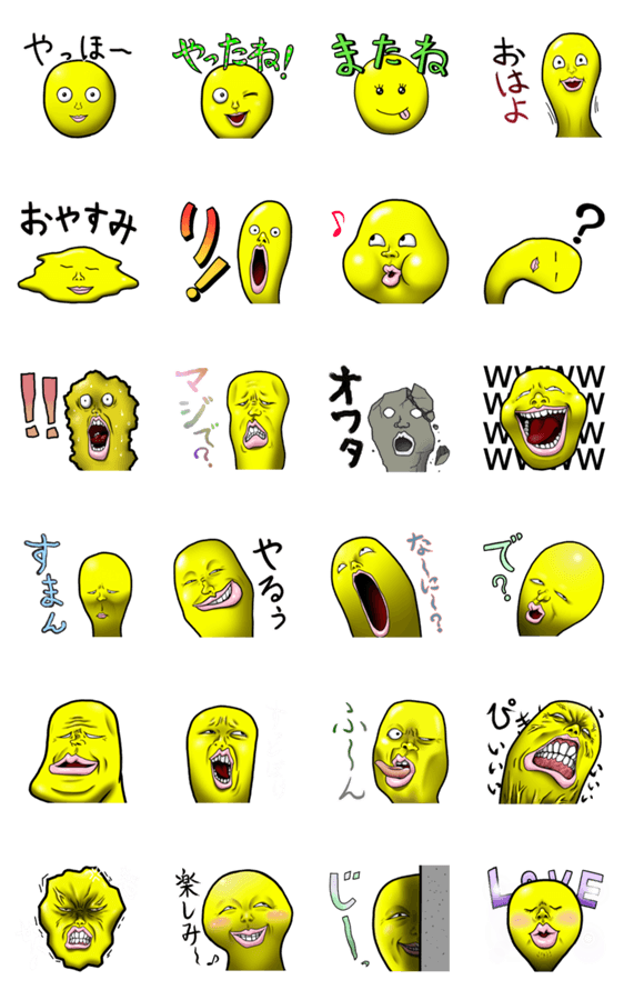 黄色い キャラクター スタンプ 豊か 表情 やつ