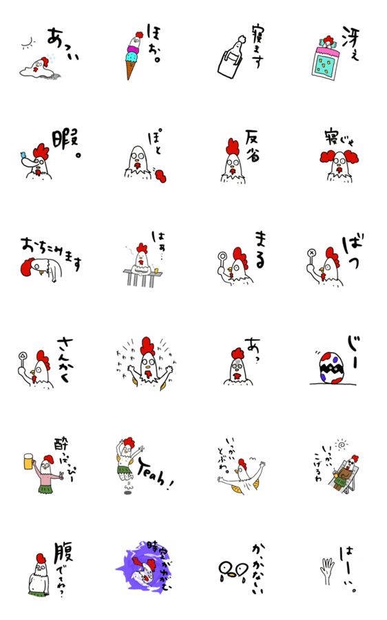 愉快なにわとりさんのつぶやきをスタンプにしました。