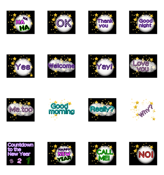 | スタンプ説明 | Countdown to the New Year, Happy New Year, Good Morning, Good Night, Welcome.....Everyday practical English. |