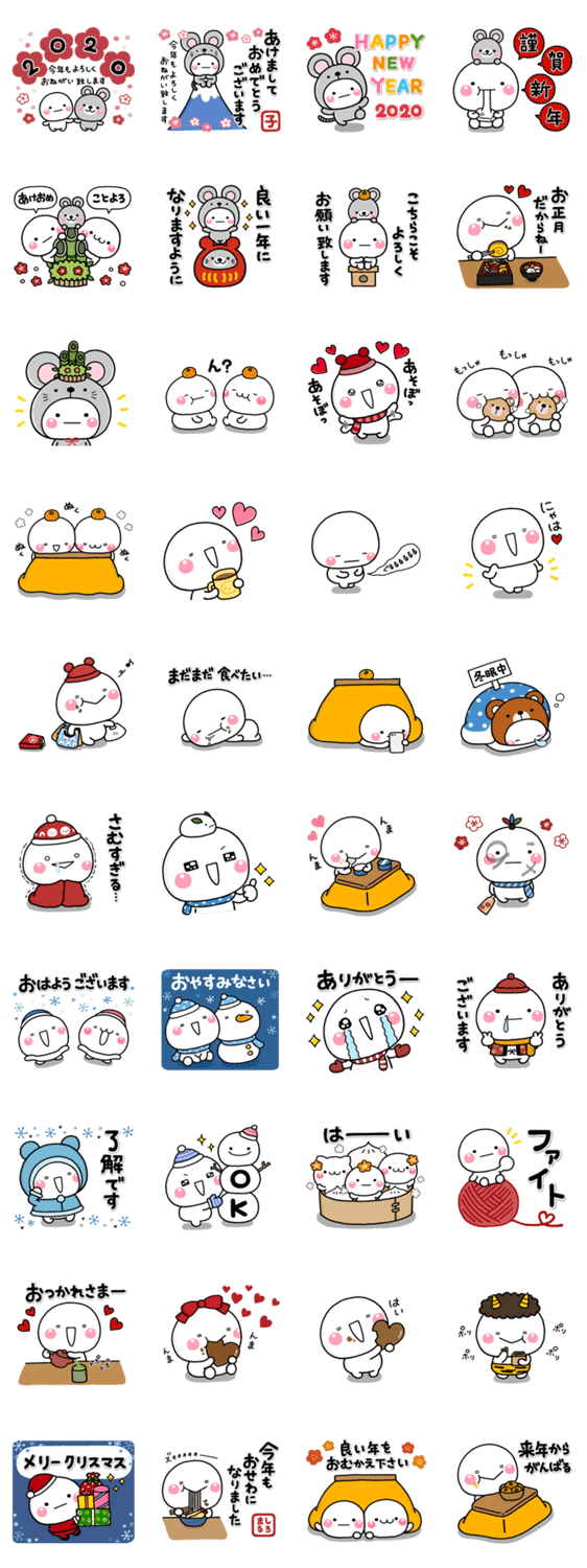 冬に使えるスタンプ/クリスマス/年末/お正月/節分/バレンタインとたっぷり詰め込んだしろまるのスタンプです。こちらはリニューアルverのイラストとなります。