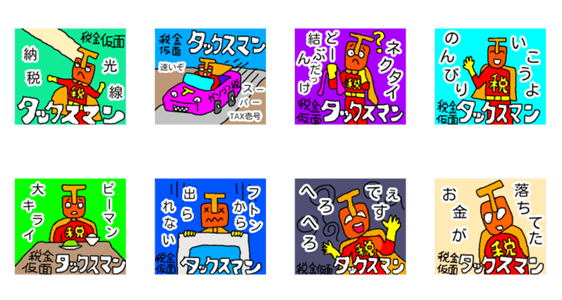 スタンプ説明 新しいヒーロー、タックスマンの第二弾。