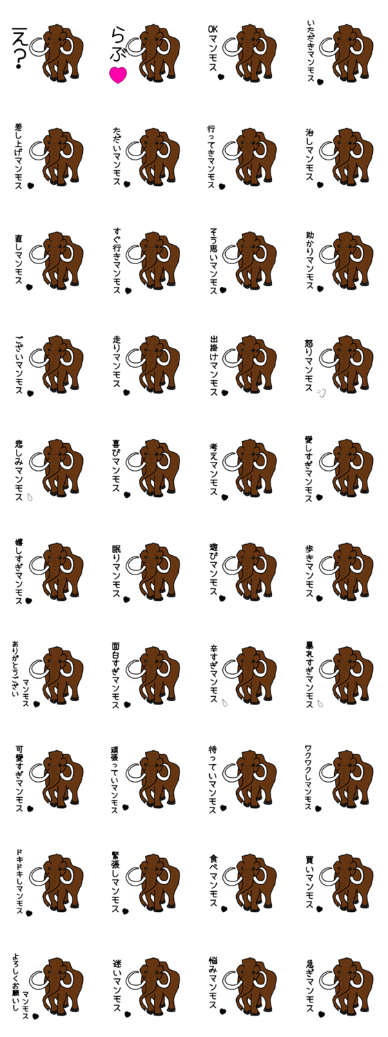 マンモス好きの為の、マンモス語スタンプ!マンモスダジャレ!
