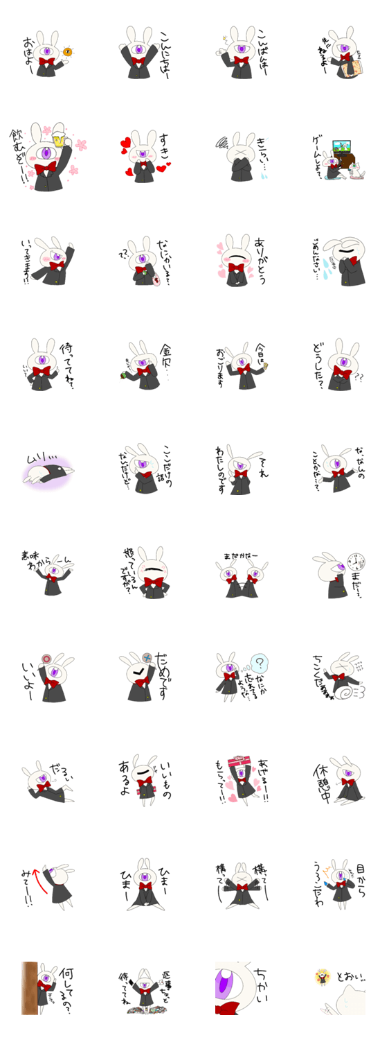 人間に憧れている単眼のうさぎです。草が主食ですが雑食です。愛でてあげてください。