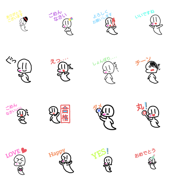 カワイイおばけのピーちゃんのうれしい時に使ってほしいスタンプです。