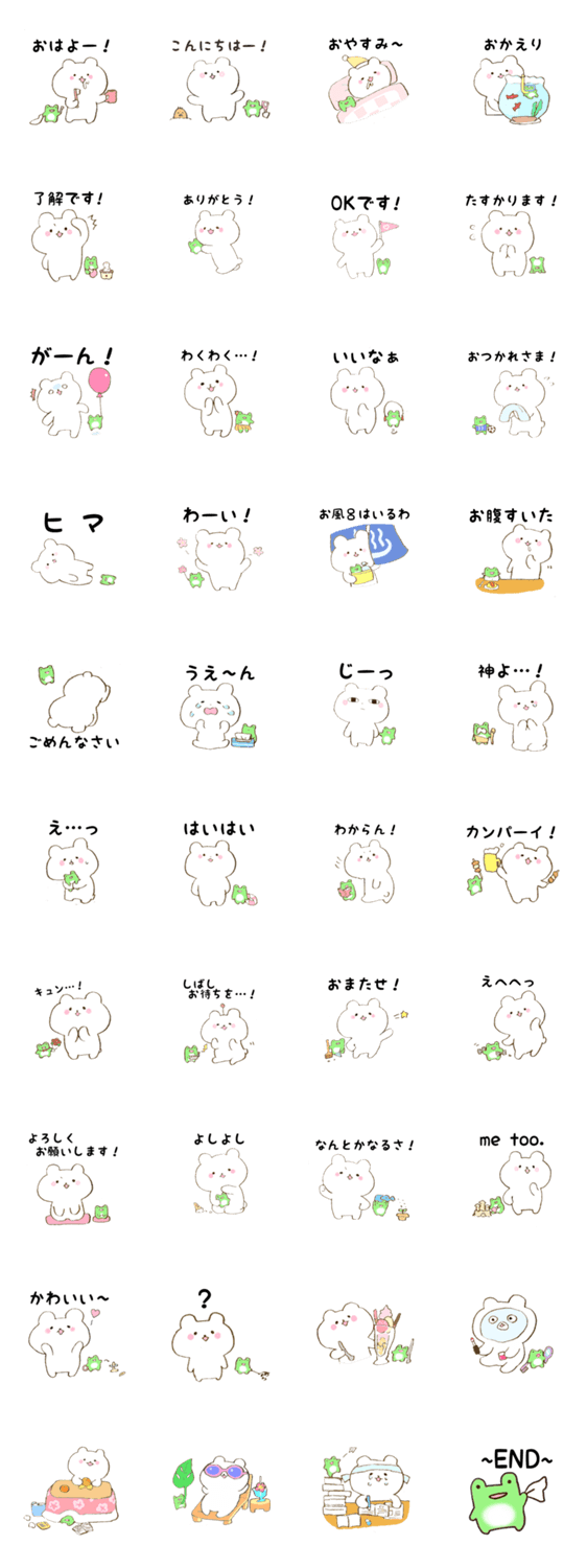 シロクマさんとカエルさんのでこぼこコンビスタンプです。